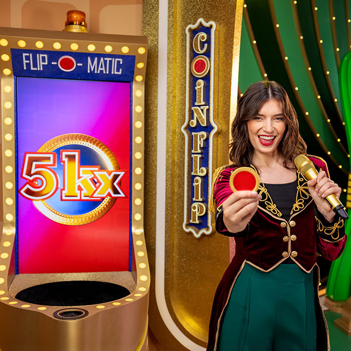 Large potential wins at a flip of a coin! In this thrilling Bonus game, a red and blue-sided coin is flipped to determine your wins. First, the coin is placed in a launcher, and the multipliers for each side are revealed on the screen.